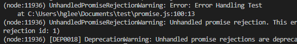 그러면 결과값은 받아오는 것을 확인하였으니(then, resolve) 에러를 처리하는 방법을 확인해 보겠습니다.